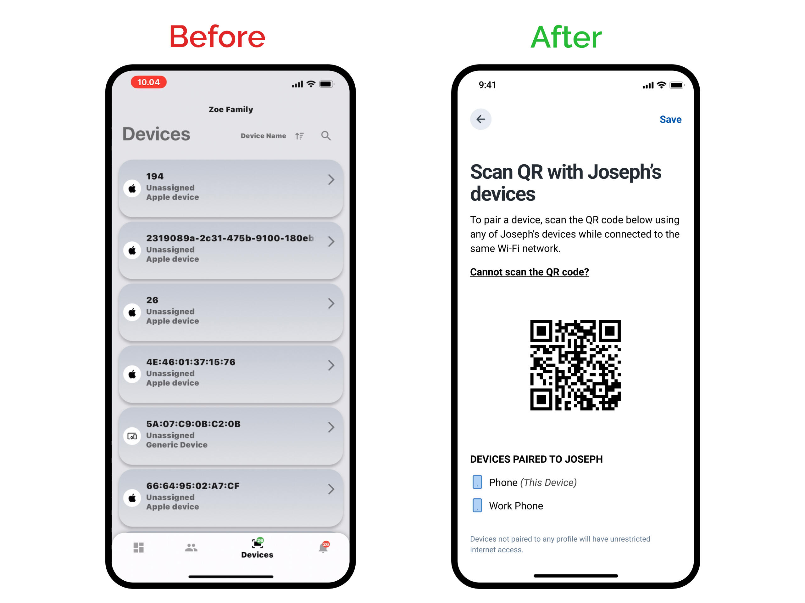 To monitor internet usage, parents needed to assign an owner to each device connected to their Wi-Fi. The original onboarding did not include this crucial step.Furthermore, the interface displayed a list of devices using only MAC addresses and device brands, making it nearly impossible for users to identify and assign devices in households with multiple devices.