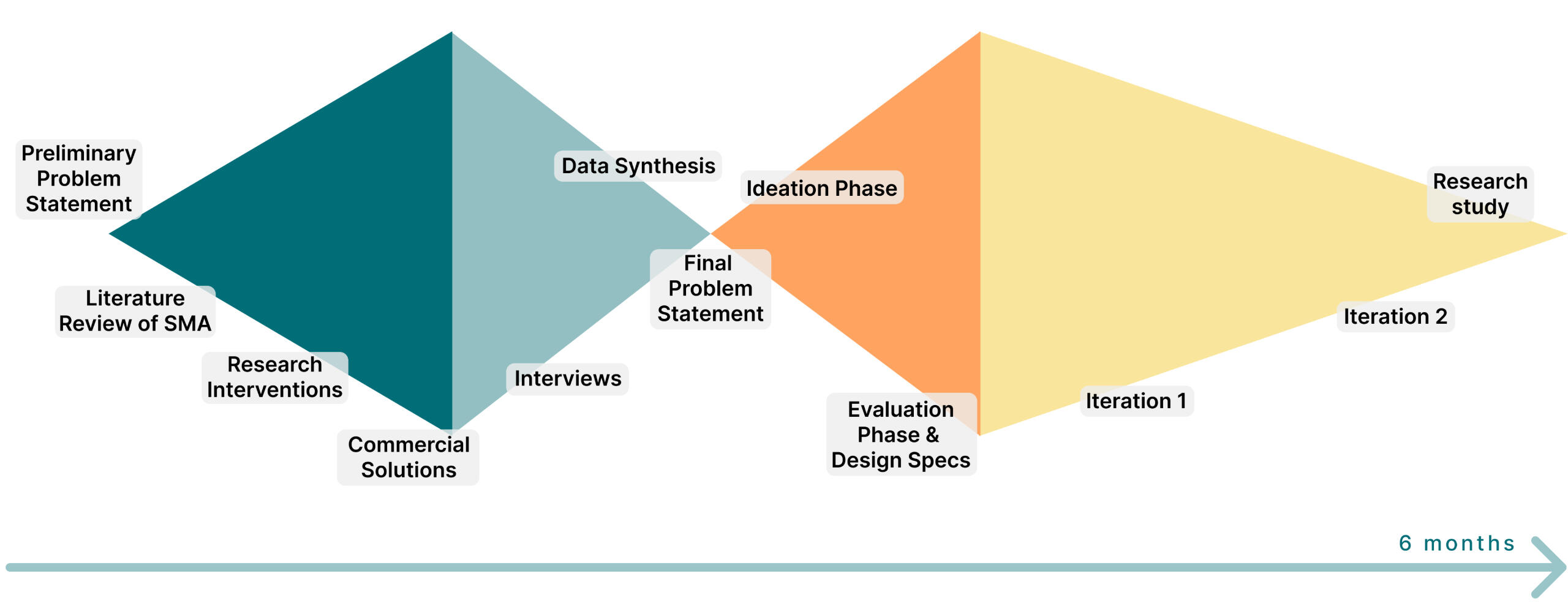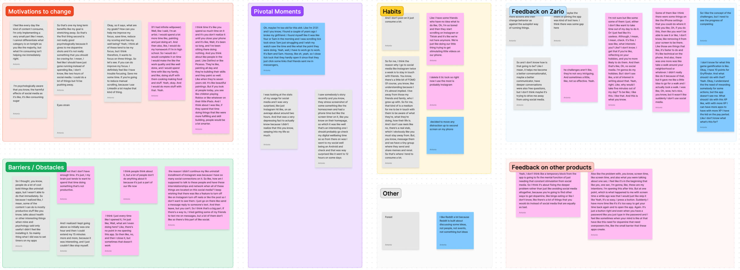 The problem statement was too vast to start ideating solutions. So, I went and checked the current available ones. First,I looked into the academic research of interventions for social media addiction. This showed a promise in interventions based on cognitive behavioral therapy over others like content blockers, or pharmaceutical solutions.Then, I looked into commercial solutions, where I identified 36 competitors designed to reduce screen time. I analyzed them and mapped them out. Of these, only two were based on psychological theories. I conducted interviews with three potential users to understand: